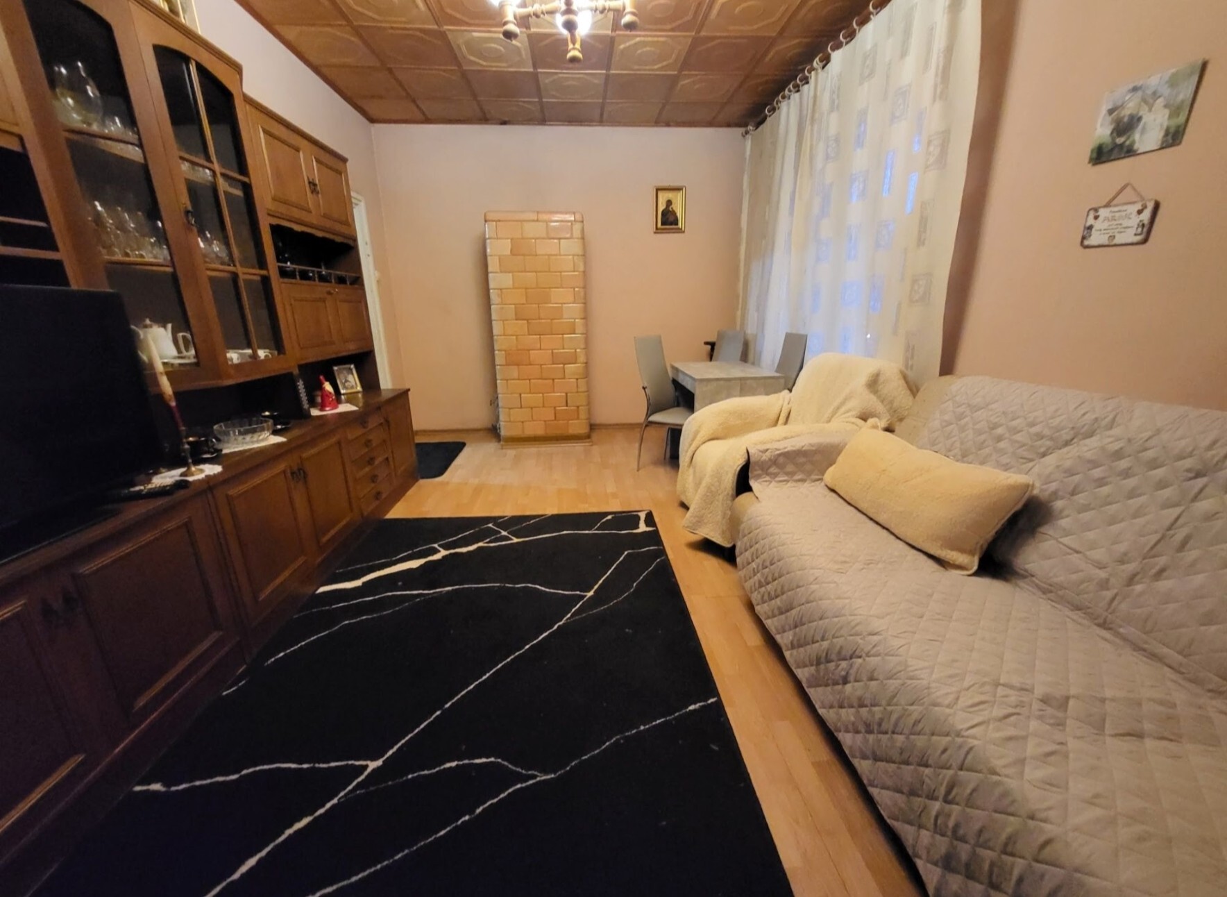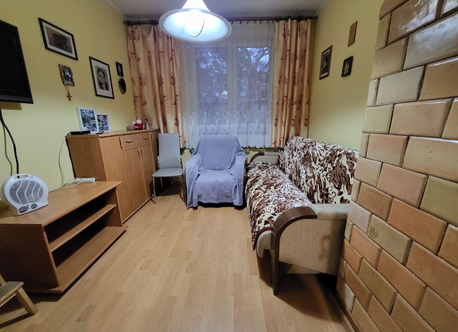 Zdecydowaną zaletą są ciągi kominowe, gdzie w salonie i sypialni aż się prosi, żeby zainstalować klimatyczne kominki. Jest to wielka zaleta starego budownictwa. Niski czynsz, zaledwie 350 zł.