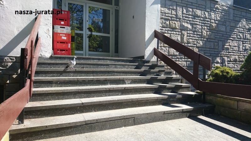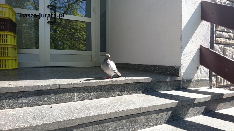 Jurata noclegi - nasza-jurata.pl - W piątek przy wejściu do kuchni Ośrodka Wypoczynkowego w Juracie wylądował zaobrączkowany gołąb. Był osłabiony i głodny, więc został nakarmiony ziarnem i miodem, żeby jak najszybciej nabrał sił do dalszych lotów.