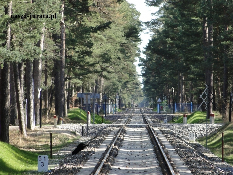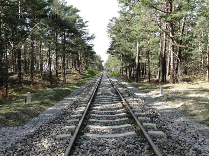 - Tor kolejowy na Półwyspie Helskim z budynkiem stacji w Juracie