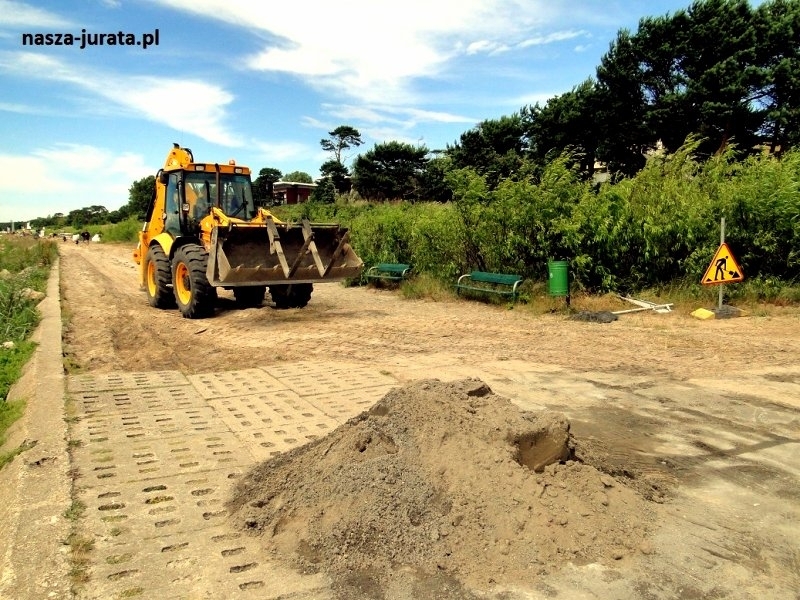 Jurata noclegi - nasza-jurata.pl - 2 lipiec - w Juracie remontują deptak spacerowy, a wczasowicze i mieszkańcy Juraty brodzą w piachu po kostki :( — w Jurata. Szkoda, że nie udało się zakończyć prac przed sezonem.